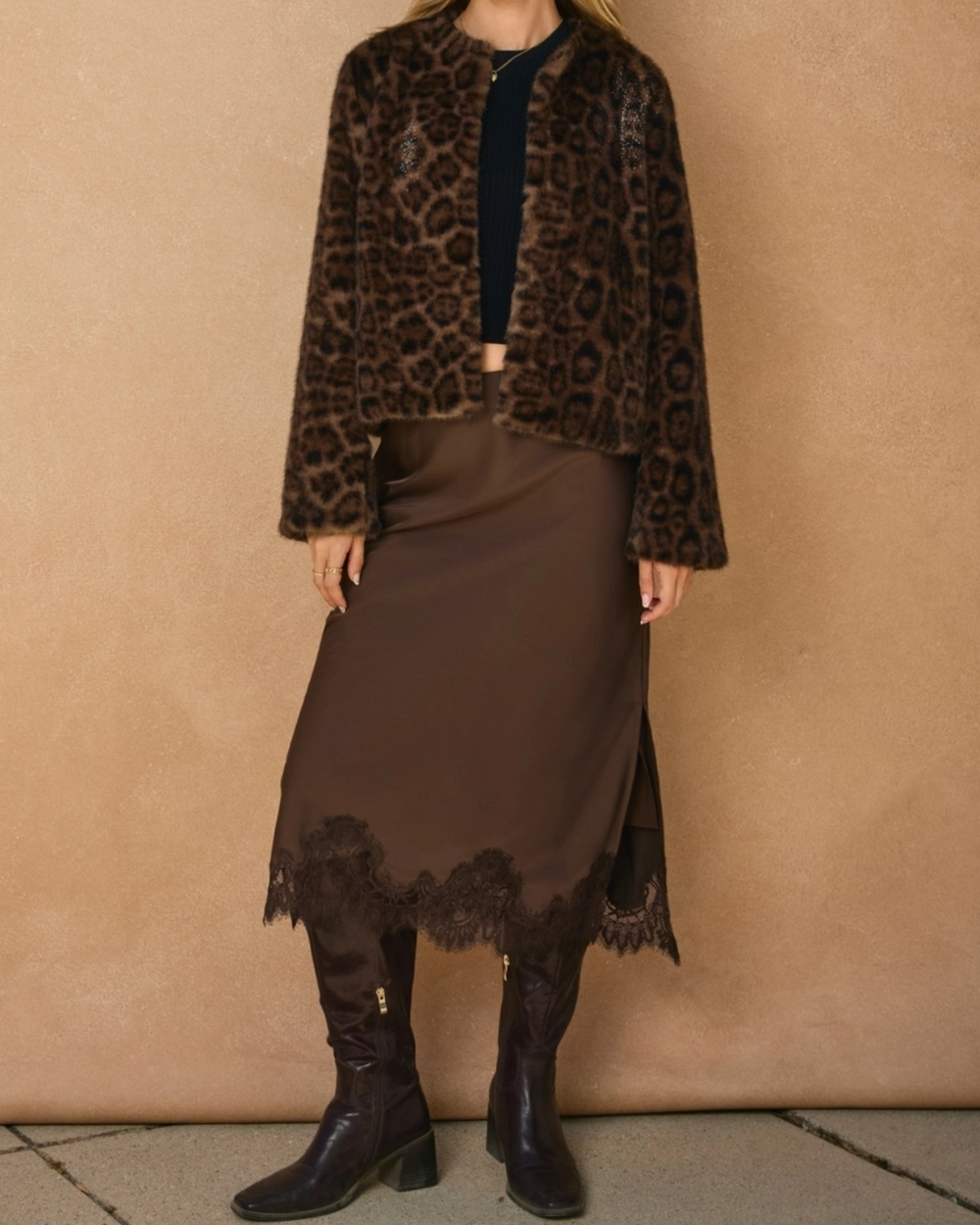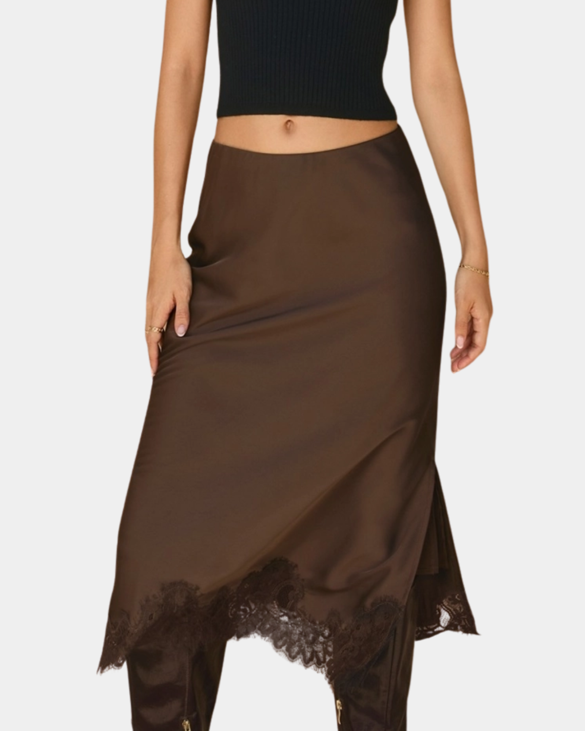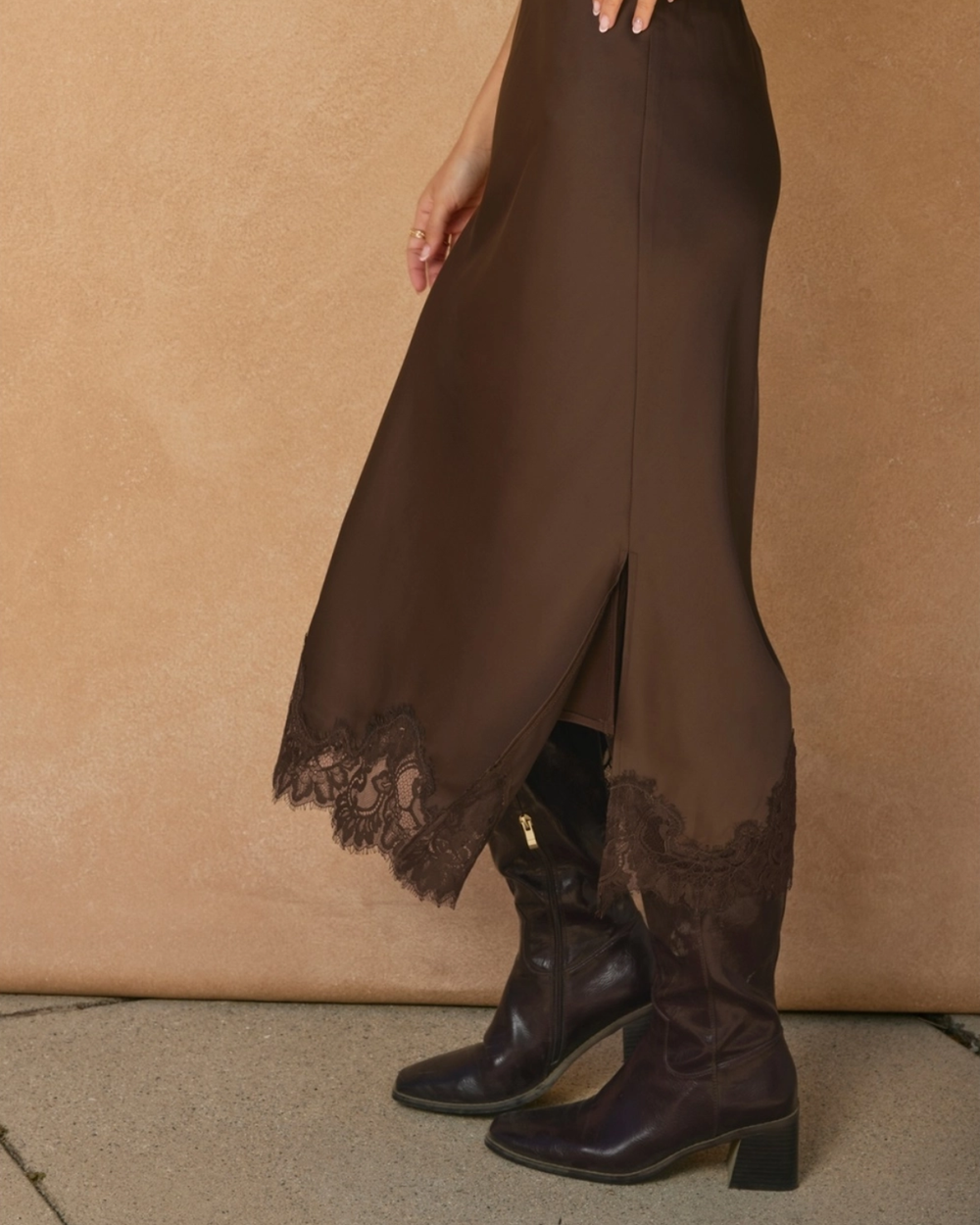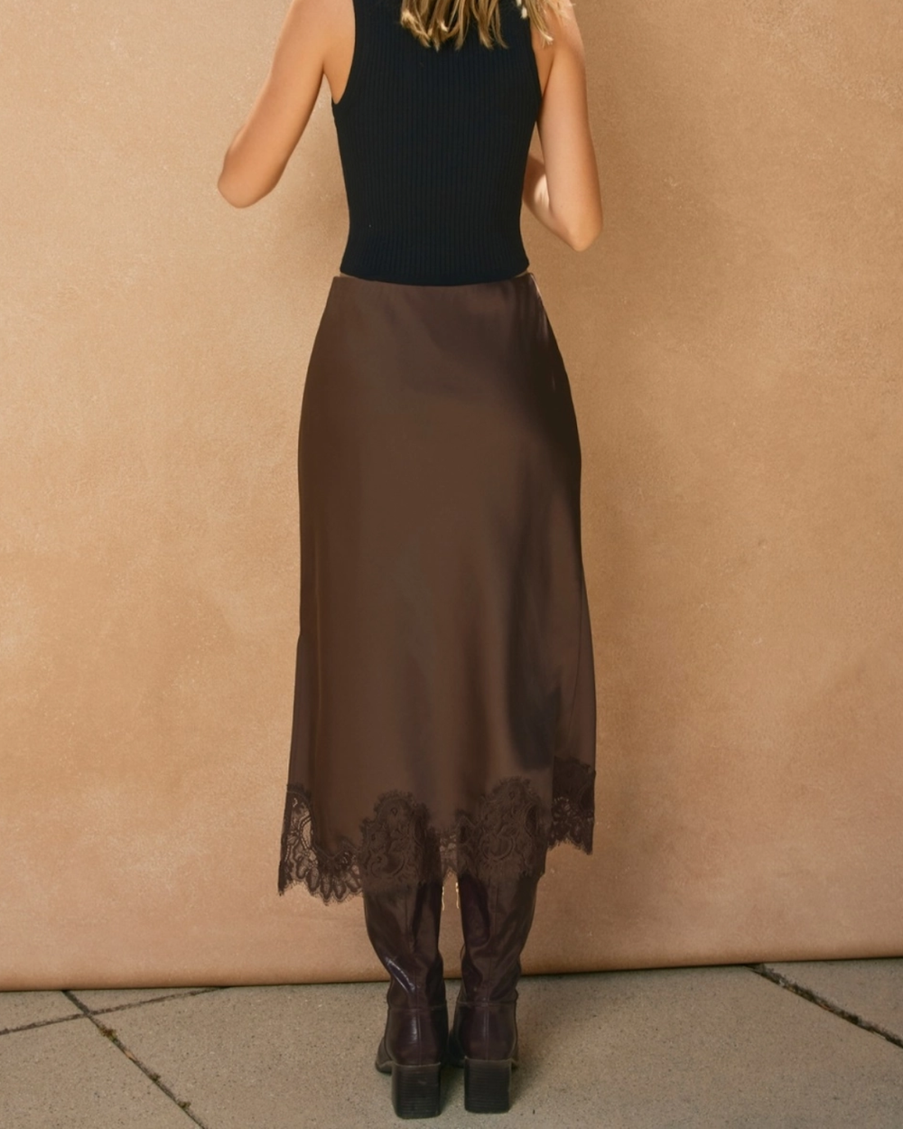 Satin Lace Skirt - Dark Chocolate