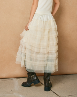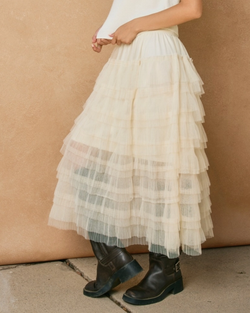 Lightweight and flowy, this sheer mesh maxi slip skirt showcases intricate micro pleats that add movement and texture. The ecru hue pairs effortlessly with everything in your wardrobe.