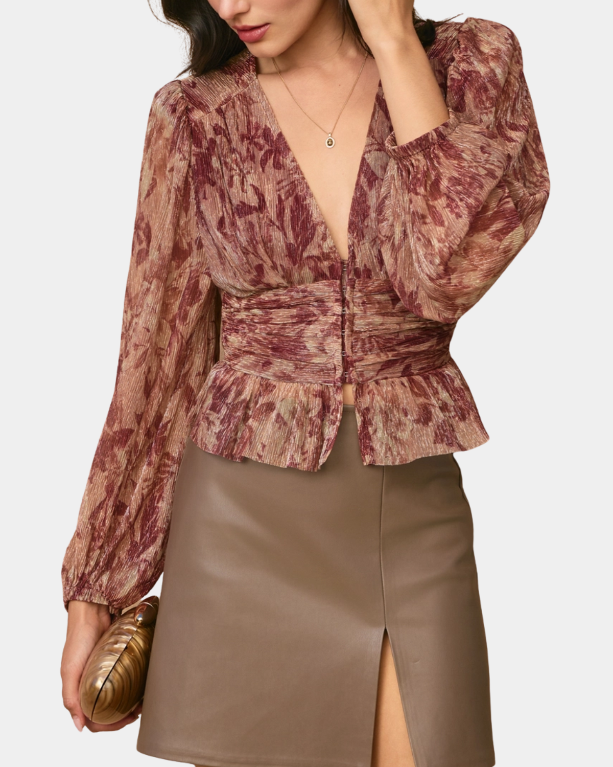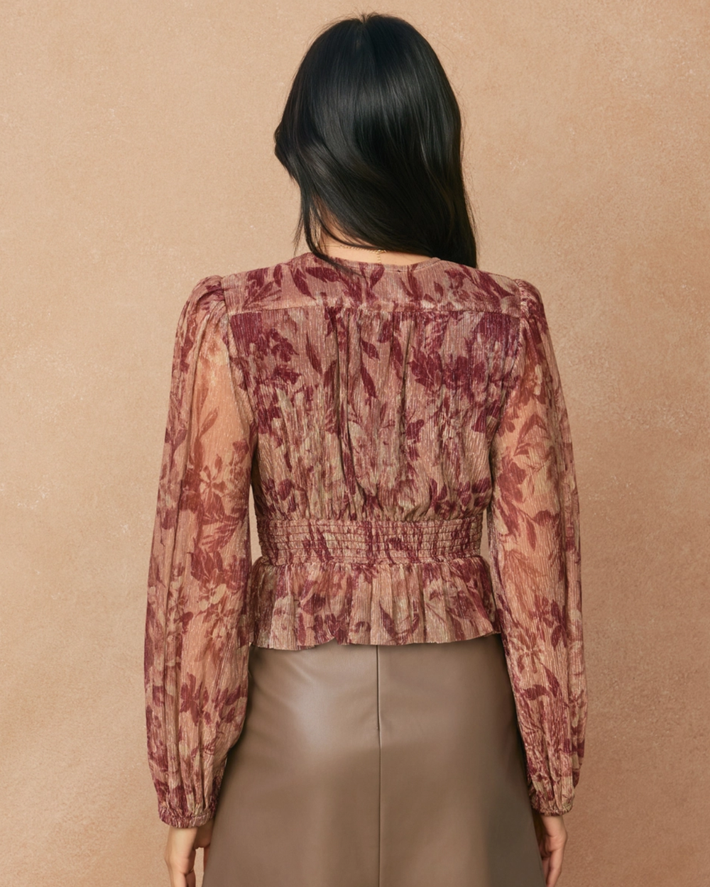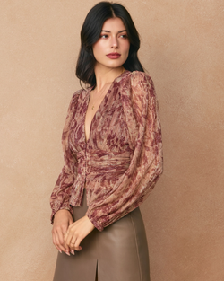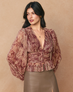 Elegant blouson blouse showcasing a refined floral print with graceful long sleeves. A timeless piece that effortlessly elevates your everyday style with understated botanical charm.
