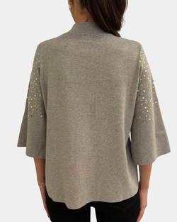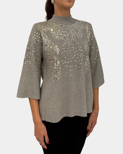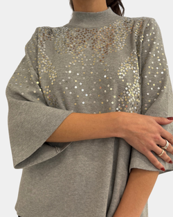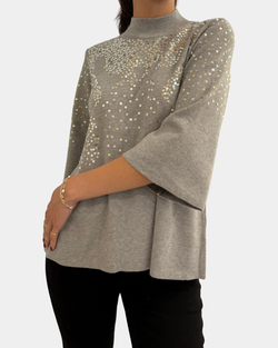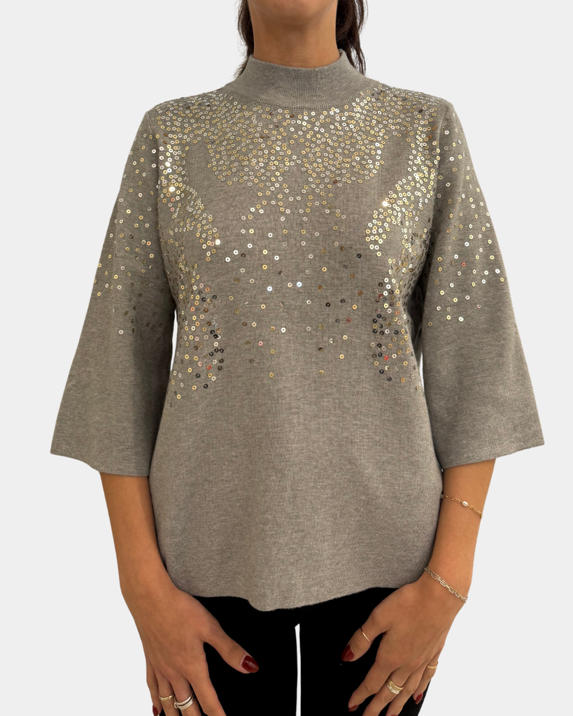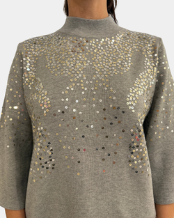 Add sparkle to your days with this heather grey sequin mock neck sweater—chic meets snug in every stitch.