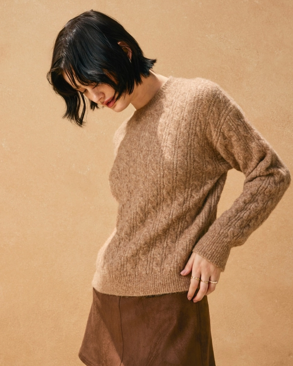 Fuzzy Cable Cardigan - Dark Hunter
