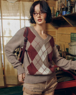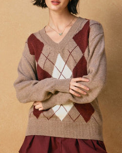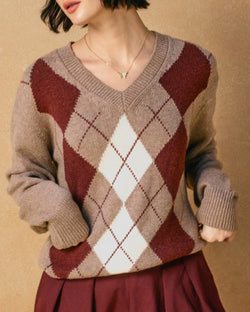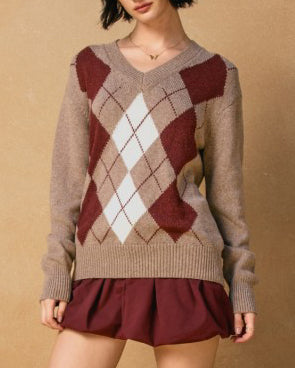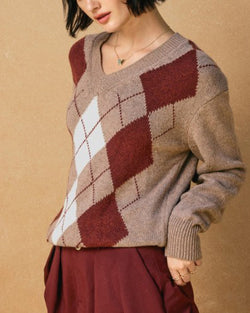 This soft and cozy sweater features a v-neckline, argyle pattern and a pullover silhouette. A must for casual days and beyond, this knit is the perfect for your fall wardrobe.