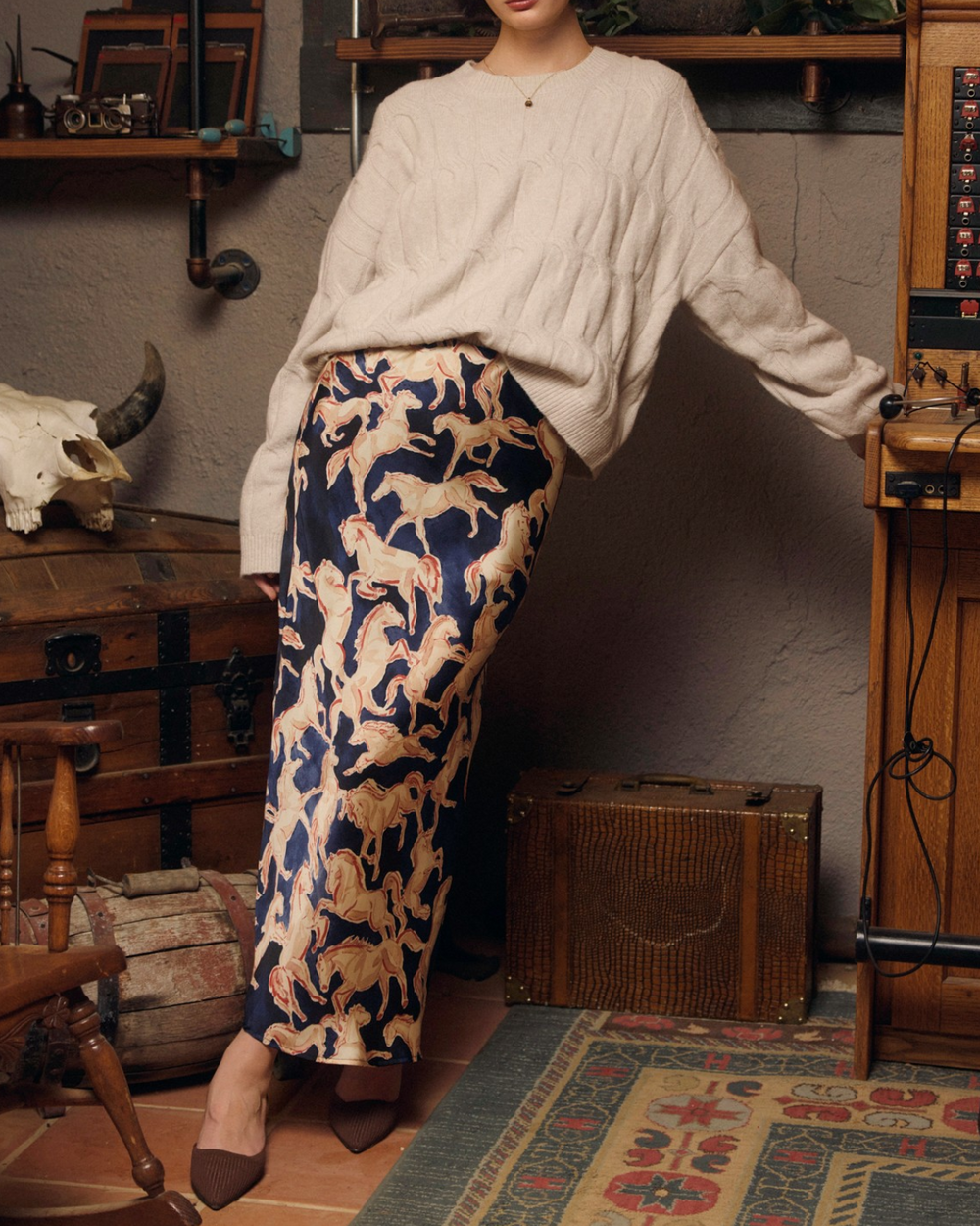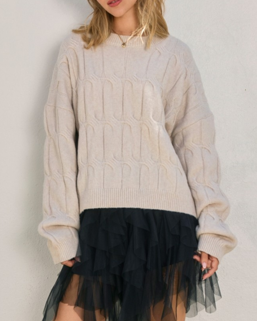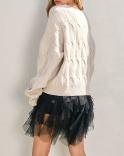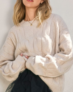 The Frosted Mesa Cable Knit Sweater in Ecru wraps you in cozy charm with its relaxed fit and textured cable knit design. Perfect for layering, it adds a playful touch of warmth to any outfit.