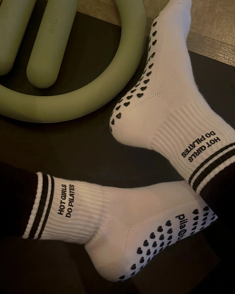 Rock these Hot Girls Do grip socks for Pilates that actually feels good. The grip technology keeps you stable through every move, while premium materials keep your feet comfy all day long. Cute enough for casual wear too—because who says workout gear can't be stylish?