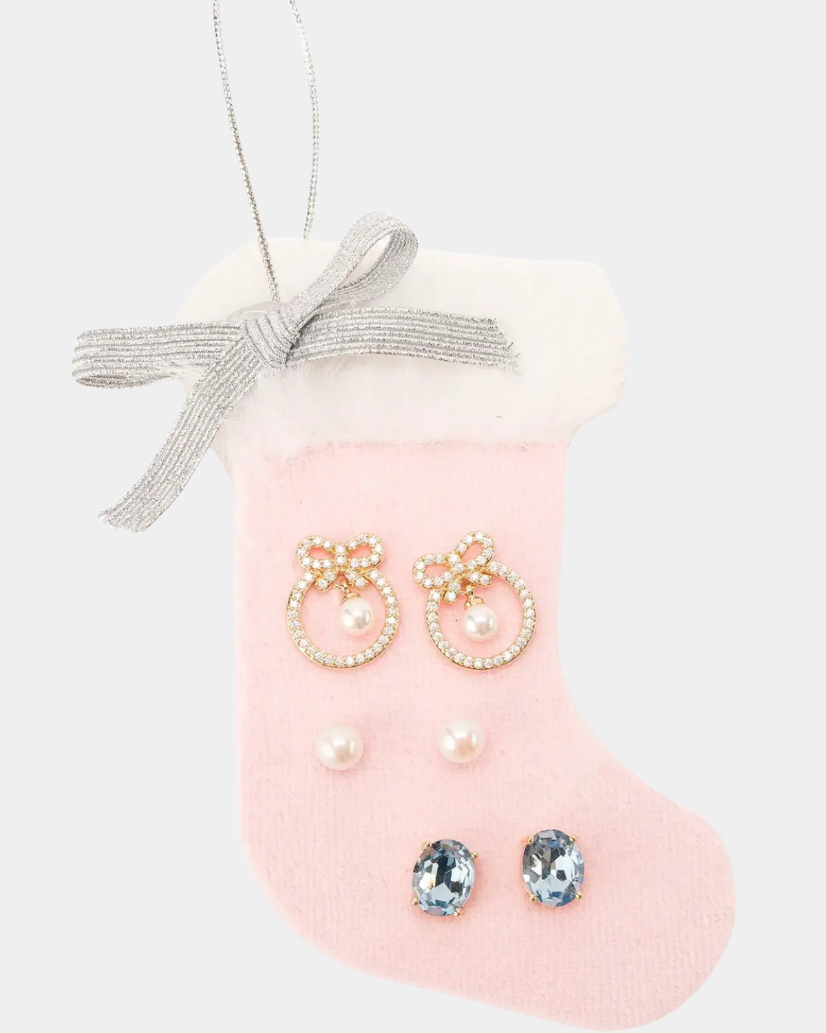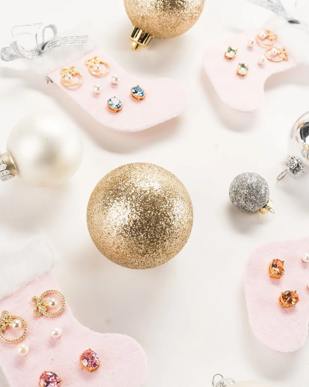 Brighten up the holidays with the Eloise Stocking Post Set, a sparkling trio of earrings nestled in a cozy fur-trimmed stocking. It’s the perfect little surprise to delight your loved ones and add extra cheer to their season!