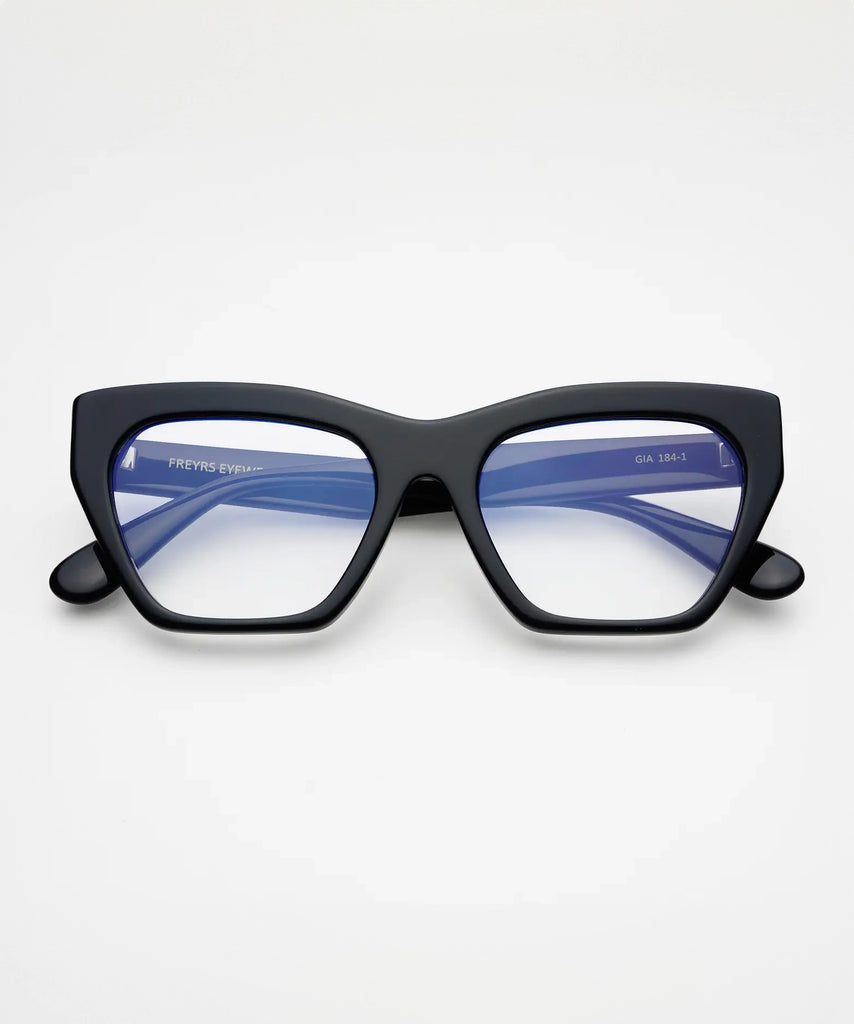 Elevate your reading game with our Freyrs Gia Blue Light Readers in sleek black! These stylish specs aren't just pretty faces—they shield your peepers from digital eye strain while making you look fabulously bookish. Perfect for late-night scrolling, work emails, or pretending to be intellectual at coffee shops. Your eyes will thank you (and so will your selfies)!