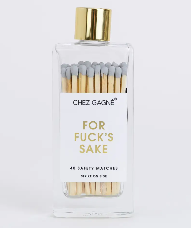 For Fuck's Sake - Glass Bottle of 40qty Soft Gray Tipped Safety Matches