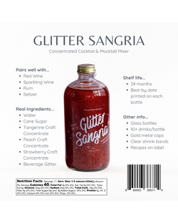 Brighten up your display with our beloved Sangria Mixer, now sparkling with FDA-approved edible glitter made from safe mica. Its sweet tangerine, strawberry, and peach flavors are sure to delight both kids and adults alike!