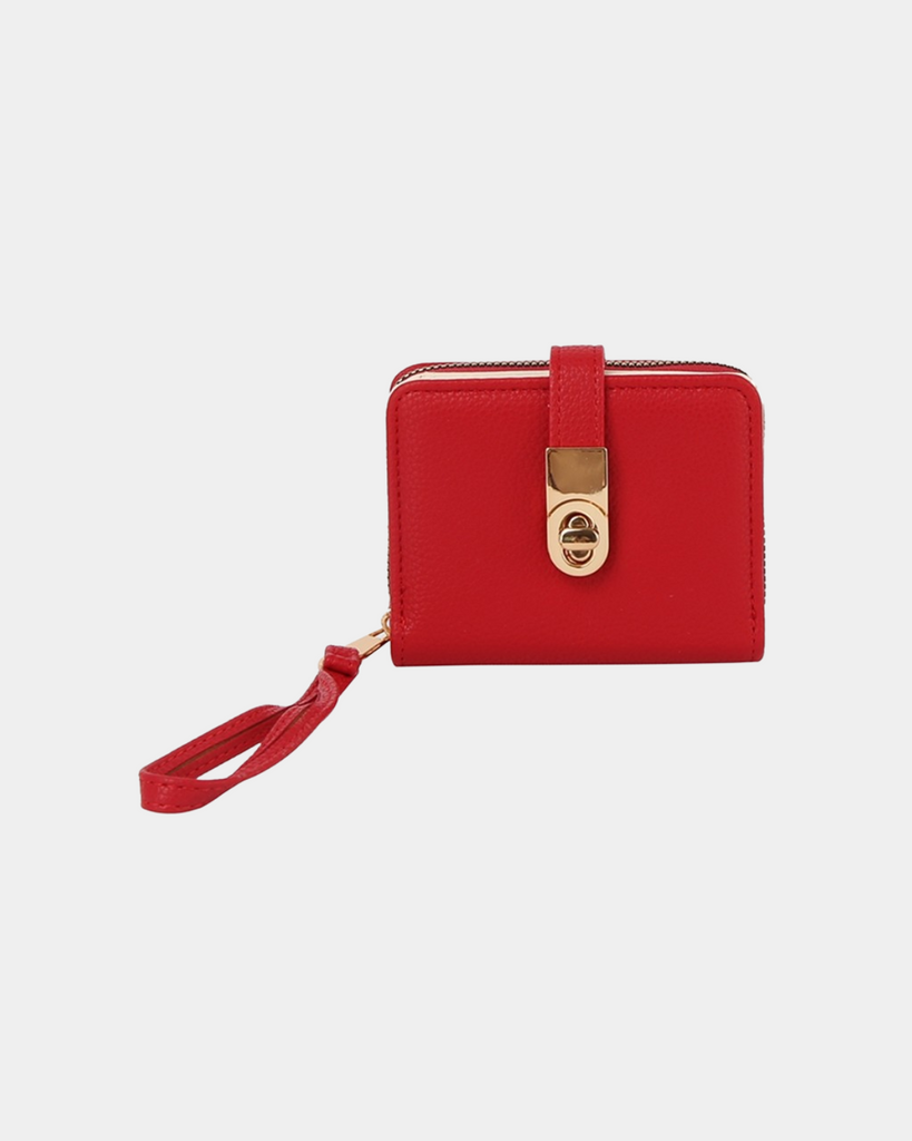 Add a pop of bold red to your day with this Twist Lock Flat Wallet Wristlet—compact and ready to hold your essentials with style. Twist, lock, and go!