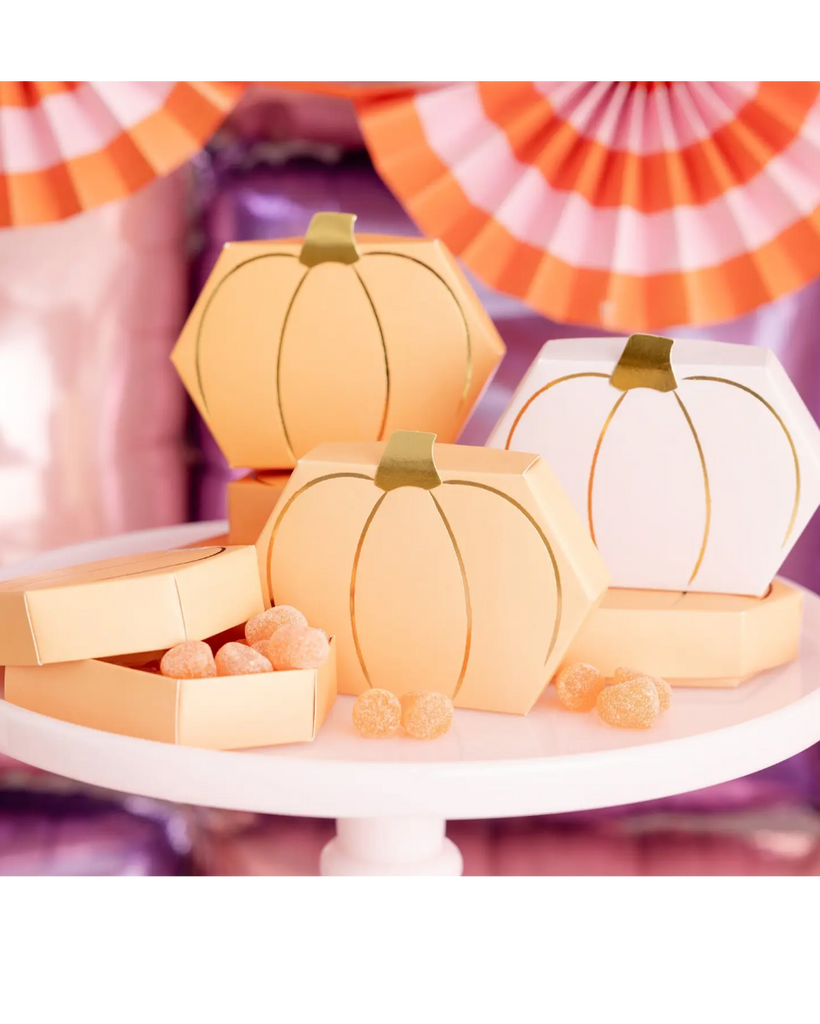 Delight your Halloween party guests with our Pumpkin Treat Box Set! These adorable pumpkin-shaped boxes are perfect for filling with candy, small gifts, or party favors. Easy to assemble and sure to add a festive touch to your spooky celebration. Trick-or-treating just got a whole lot cuter!