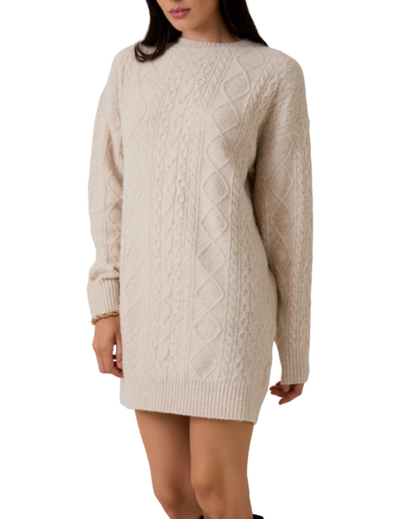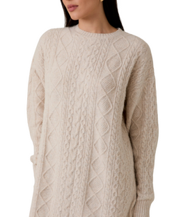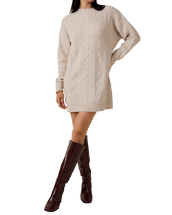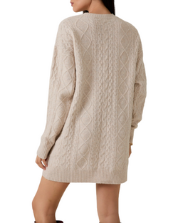 Wrap yourself in cozy charm with this beige cable sweater dress that’s as fun to wear as it is to style. Perfect for chilly days, it adds a playful twist to your wardrobe with its classic knit design.