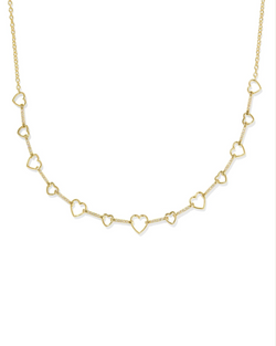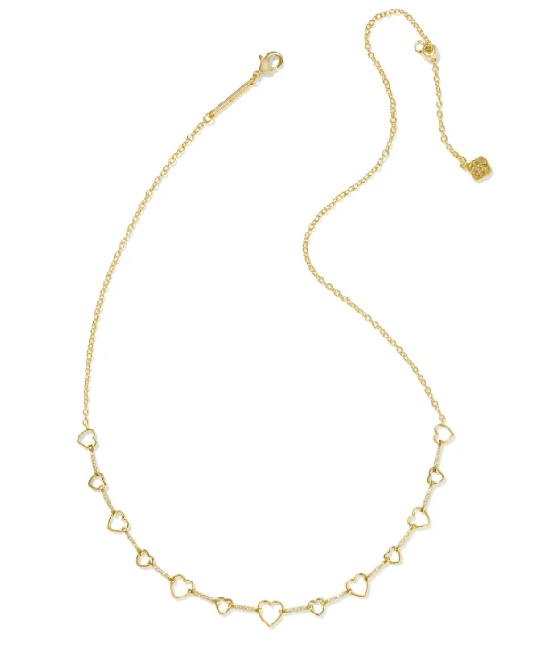 Get ready to fall for the Haisley Heart Gold Strand Necklace in White Crystal, soon to be your next go-to style. Featuring open-frame hearts on a dainty chain, this necklace adds a touch of sweetness to your stack.