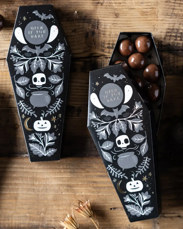 Elevate your Halloween party with our coffin-shaped treat boxes! These spooky containers add a playful yet elegant touch to your festivities. Perfect for holding candies, small gifts, or party favors, these boxes will delight guests of all ages. Get ready to serve up some frightfully fun memories!