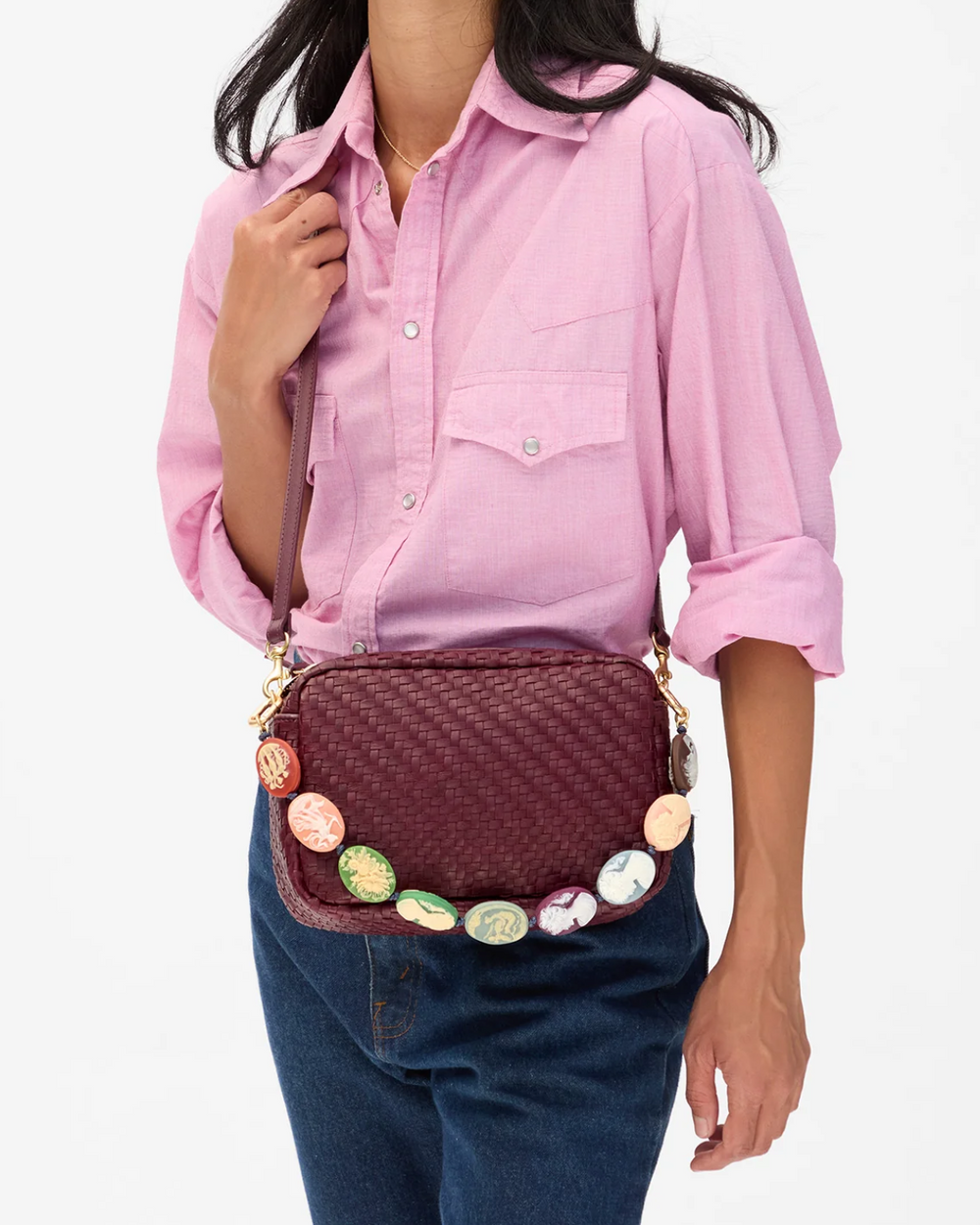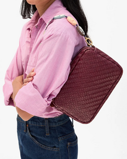The Clare V. Marisol Woven Zig Zag in Cassis is perfect for stashing your candy, phone, keys, wallet, and sunnies all at once. Made from handwoven leather with a detachable, interchangeable crossbody strap, it’s as fun to wear as it is versatile.