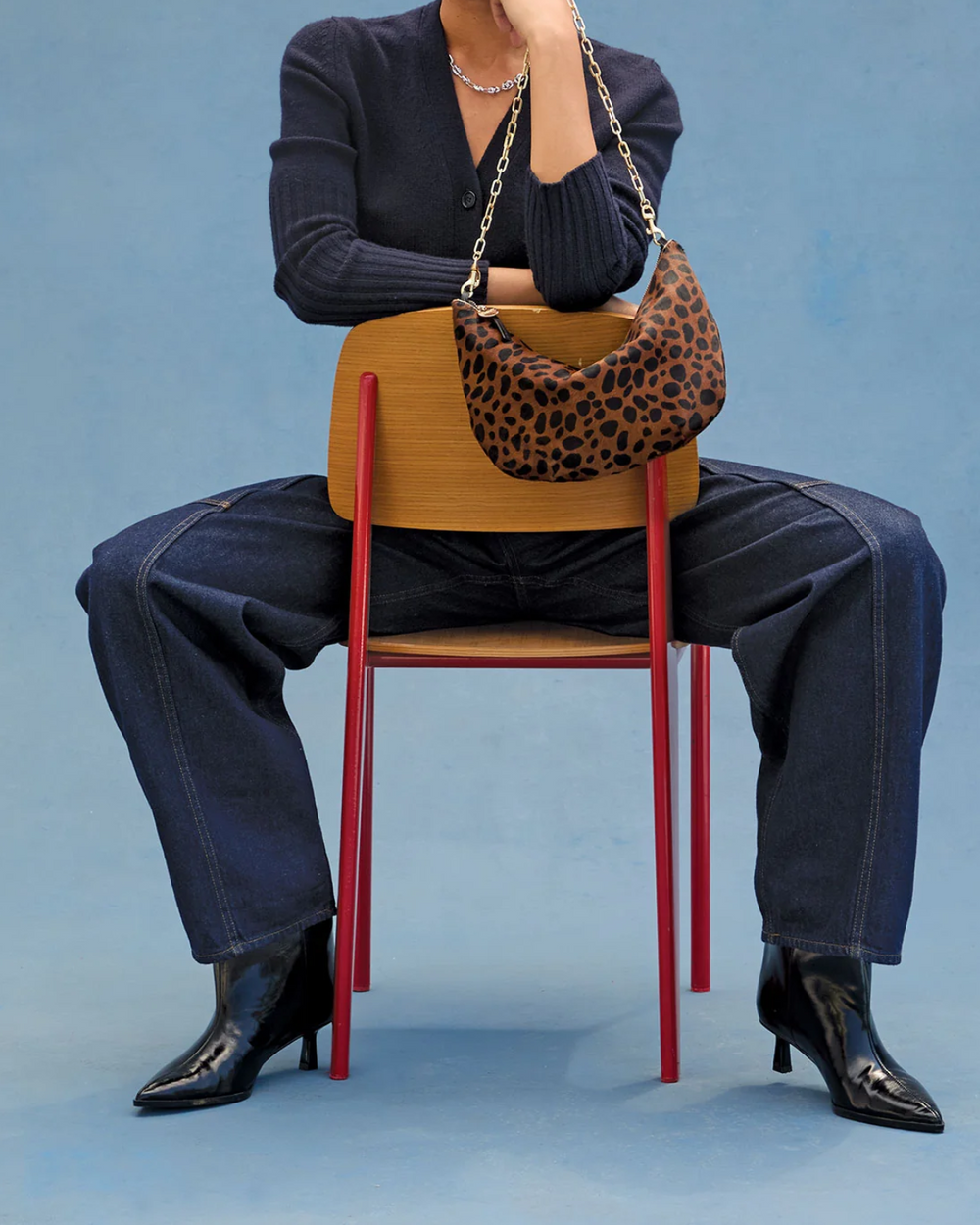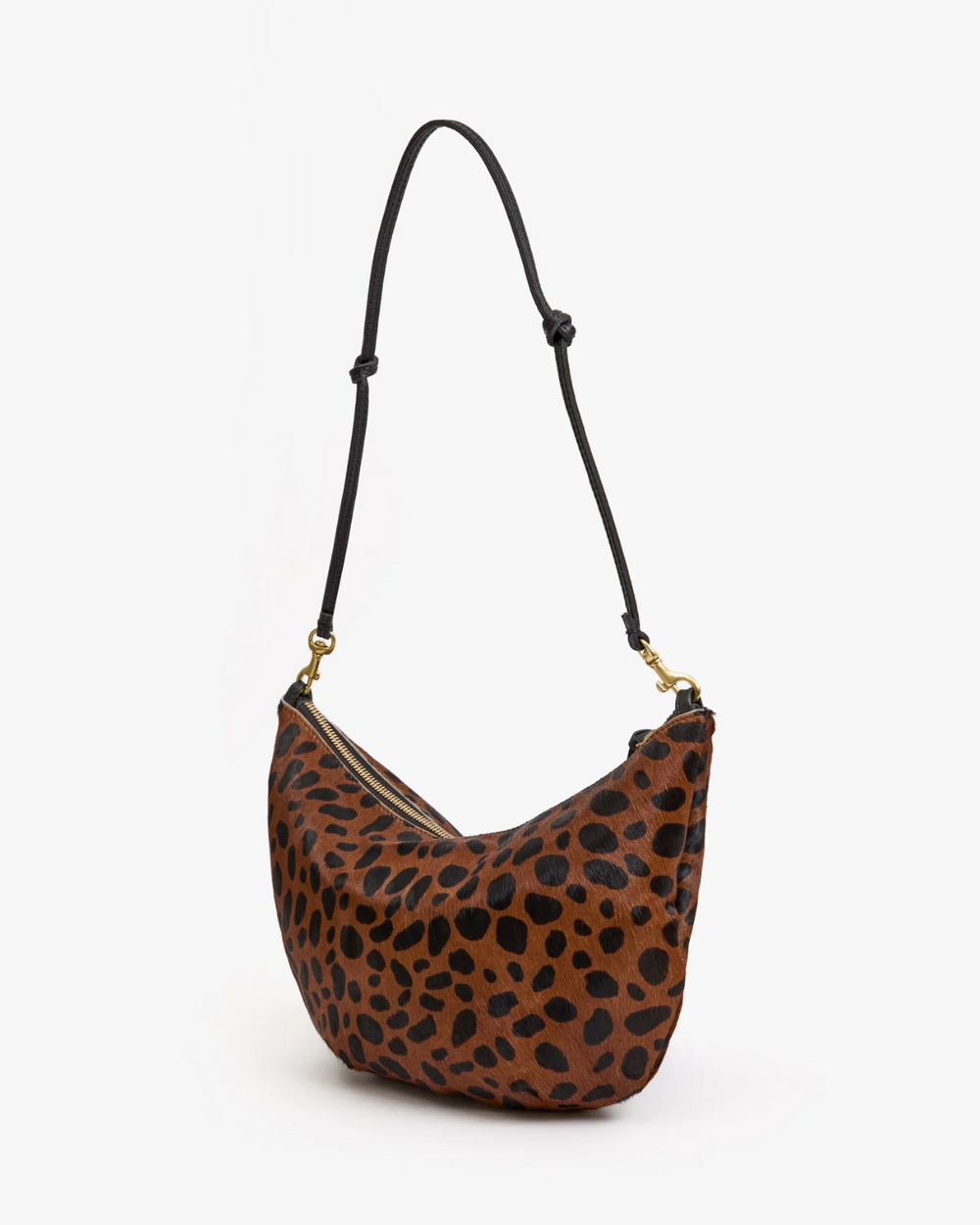 The Clare V. Lune in Tan Leopard hair-on leather keeps your essentials—phone, keys, wallet, and sunnies—close with a zip and a knotted shoulder strap. It’s the perfect dose of wild attitude for any outfit.