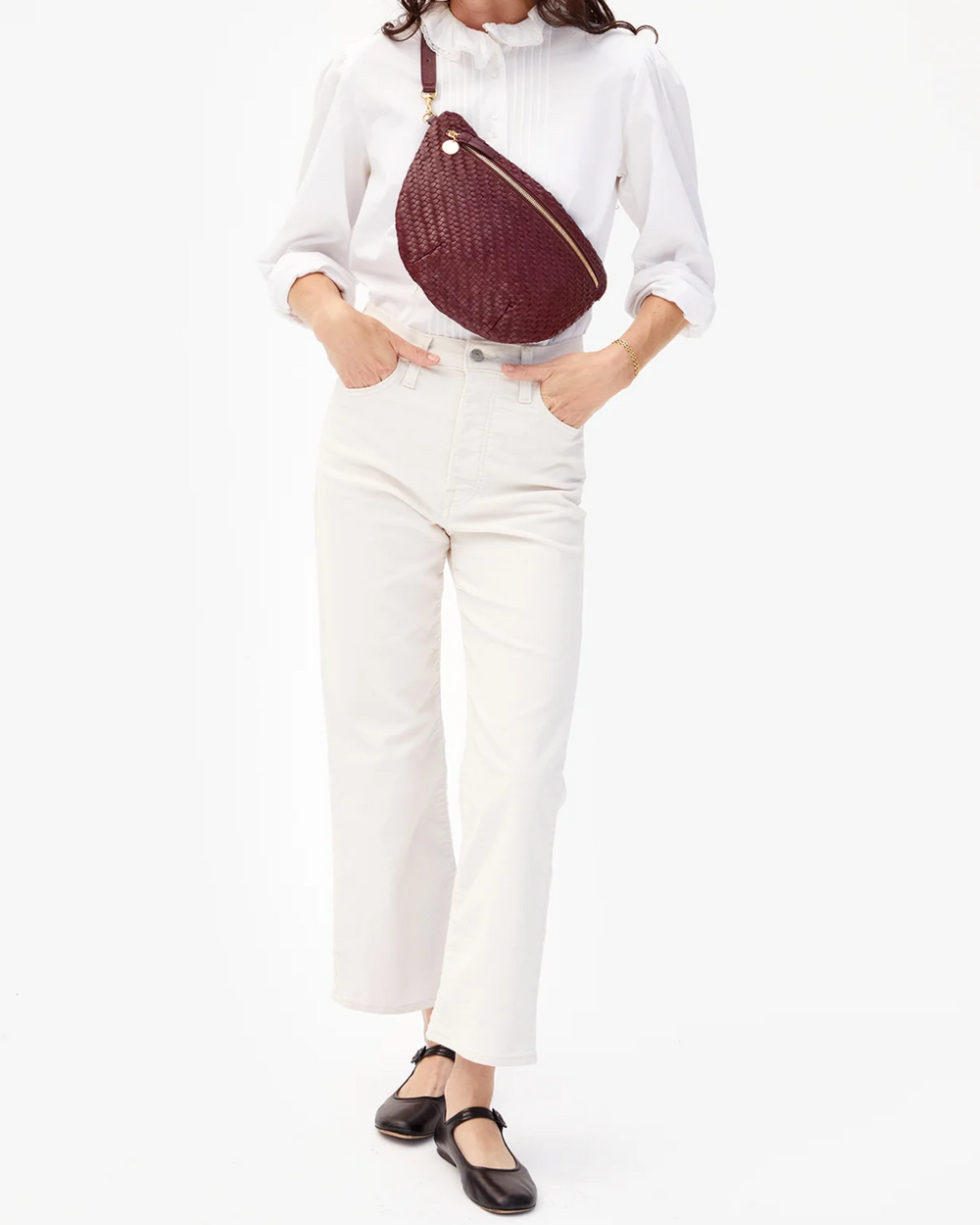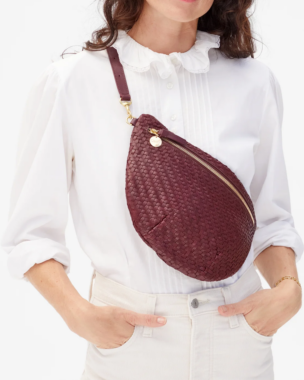 Meet your new favorite sidekick: the Clare V. Grande Woven Fanny in Cassis, a handwoven leather stunner that’s ready to go everywhere with you. Wear it crossbody, bum bag, or shoulder style thanks to its detachable, adjustable, and interchangeable strap—your everyday adventure just got a whole lot cooler.