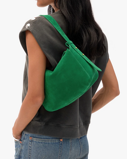 Keep your keys close and your style closer with the Clare V. Fleurine Smooth Nubuck in Deep Emerald, crafted from velvety Italian leather. Featuring an adjustable shoulder strap and secure zip closure, it’s made for fun without losing track of what matters.