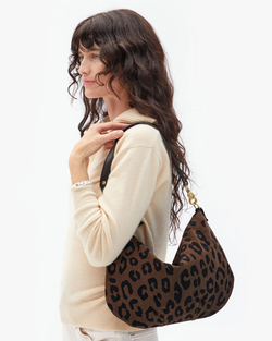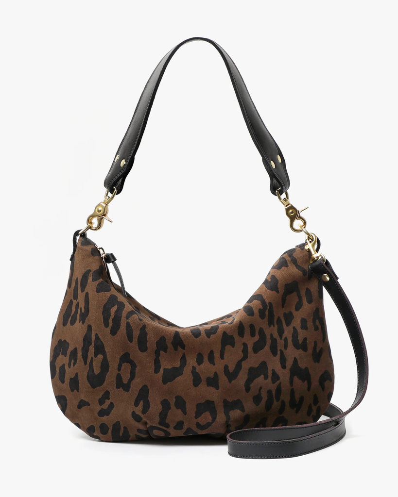 Meet your new favorite zip-top crescent bag with plenty of room for your iPad, water bottle, and sunnies. It has a handy interior pocket for organization and two fun ways to carry—choose between a 36.5-inch crossbody strap or a wider 21-inch shoulder strap—all crafted in soft Italian suede.