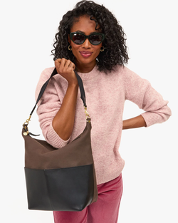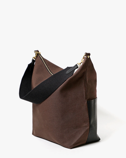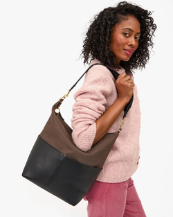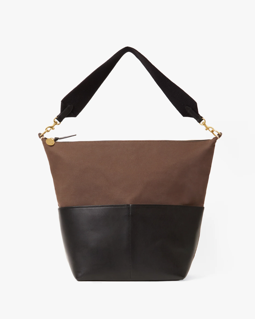 Imagine a bucket bag and a work bag had a stylish love child—a roomy zip-top bag with a cozy wide shoulder strap! It’s packed with two outside pockets and a hidden inside one, all crafted from vegetable-tanned Italian leather and sturdy canvas.