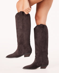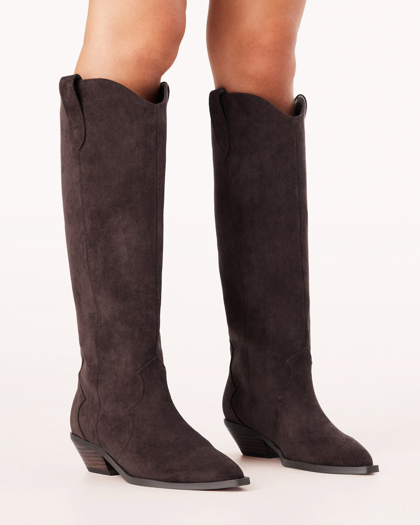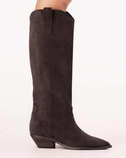 Helix is a long western-inspired boot. This cowboy boot with subtle elegant embroidery is perfect to both dress up for festivals or dress down for the everyday.
