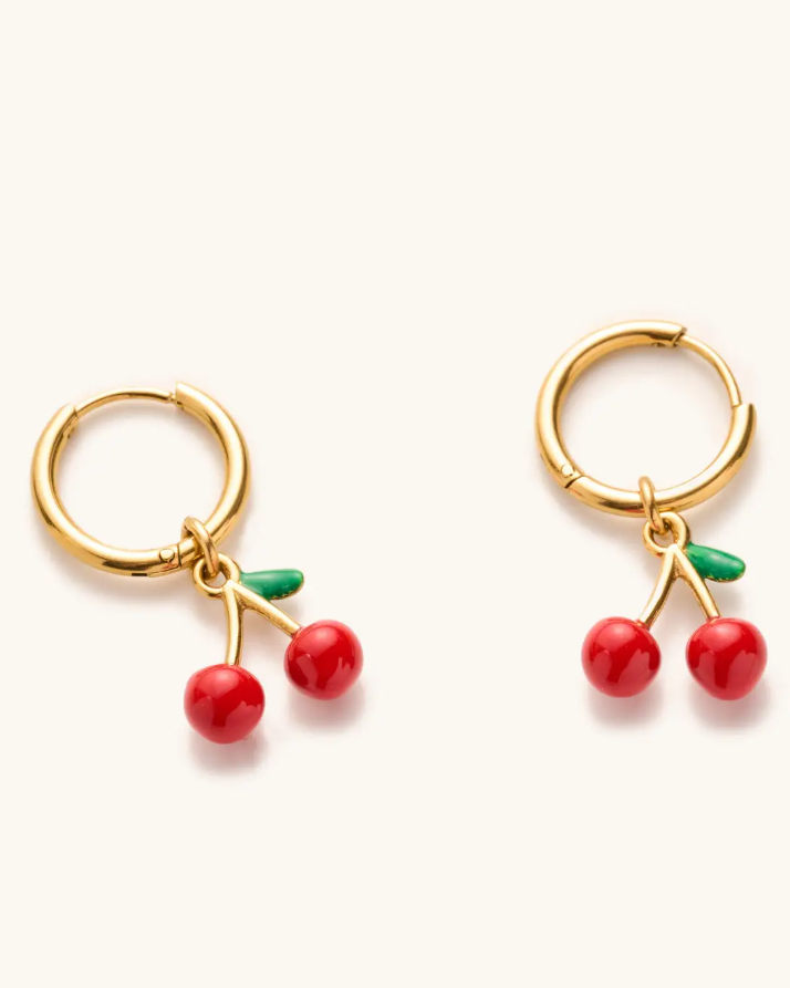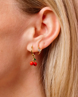 Cutest huggie earrings with a cherry charm. On trend and so much fun!
