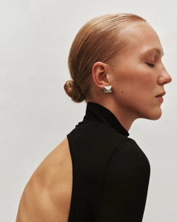 Rooted in Art Deco design principles, the Baby Celeste Earrings feature geometric ridged rectangles that echo vintage architectural detailing. These mini statements balance minimalist restraint with ornamental sophistication. Their sculpted form delivers structural impact for versatile day-to-night styling with refined, understated elegance.