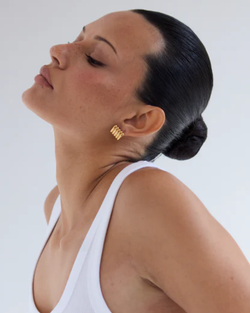 Introducing Clemmie Gold. These dainty, ribbed gold-plated stud earrings feature a structured, curved design that adds texture and dimension to any look. It's Simply Classic. Because classic never goes out of style.