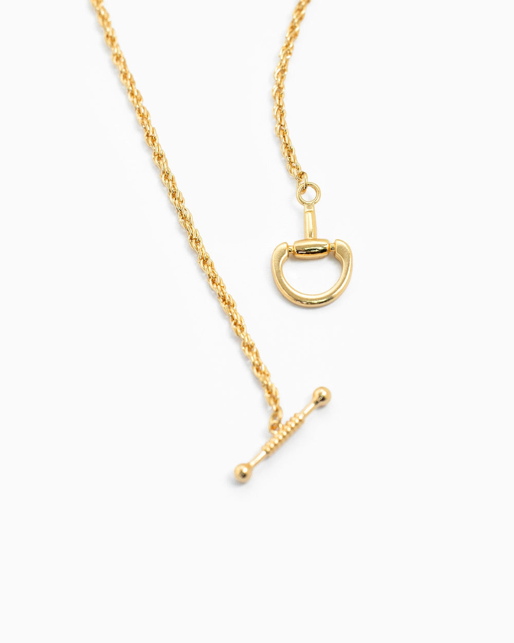 Make a statement with this gold rope chain necklace, anchored by a bold horsebit-inspired toggle clasp that blends functional elegance with refined style.