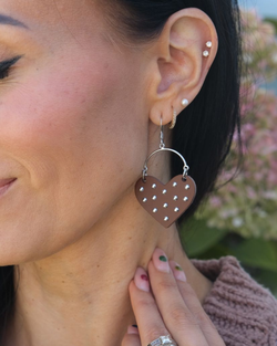 Elevate your style with the Studded Harlow Earrings. Showcasing a timeless heart design, each earring is meticulously adorned with gold or silver studs, hand-applied for a refined finish.
