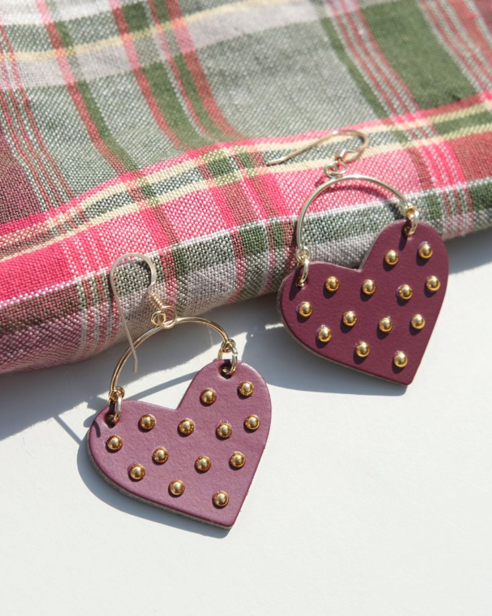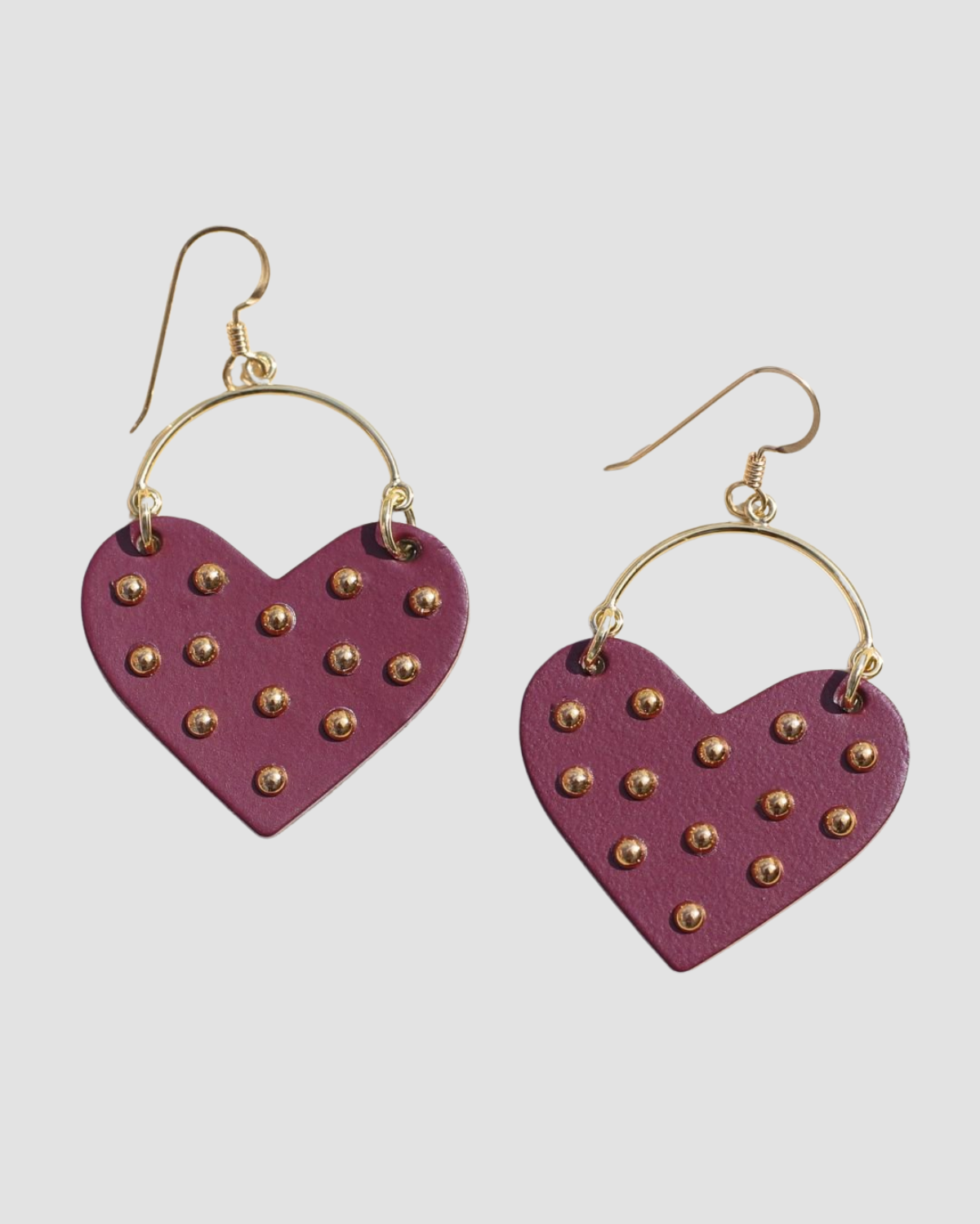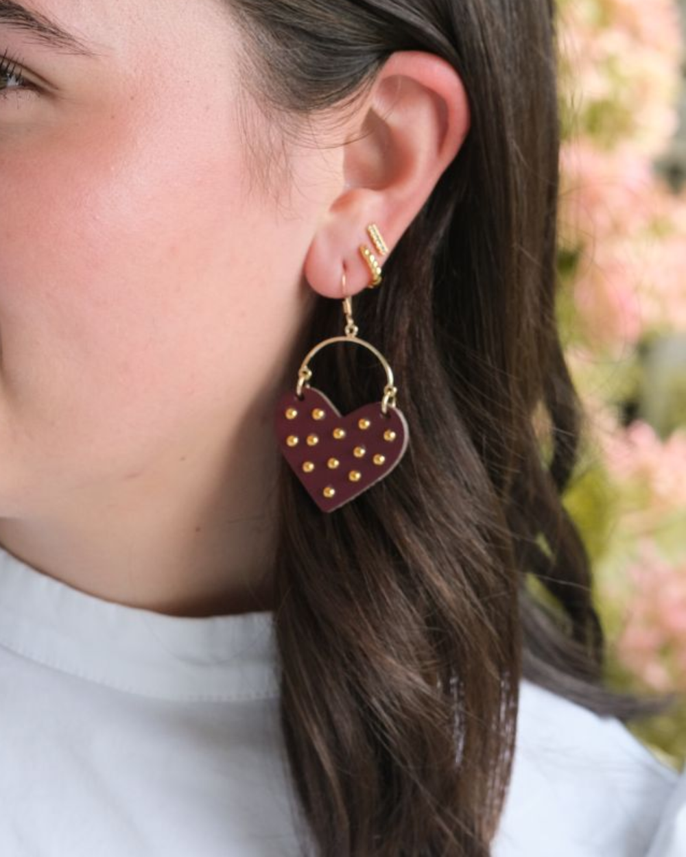 Elevate your style with the Studded Harlow Earrings. Showcasing a timeless heart design, each earring is meticulously adorned with gold or silver studs, hand-applied for a refined finish.