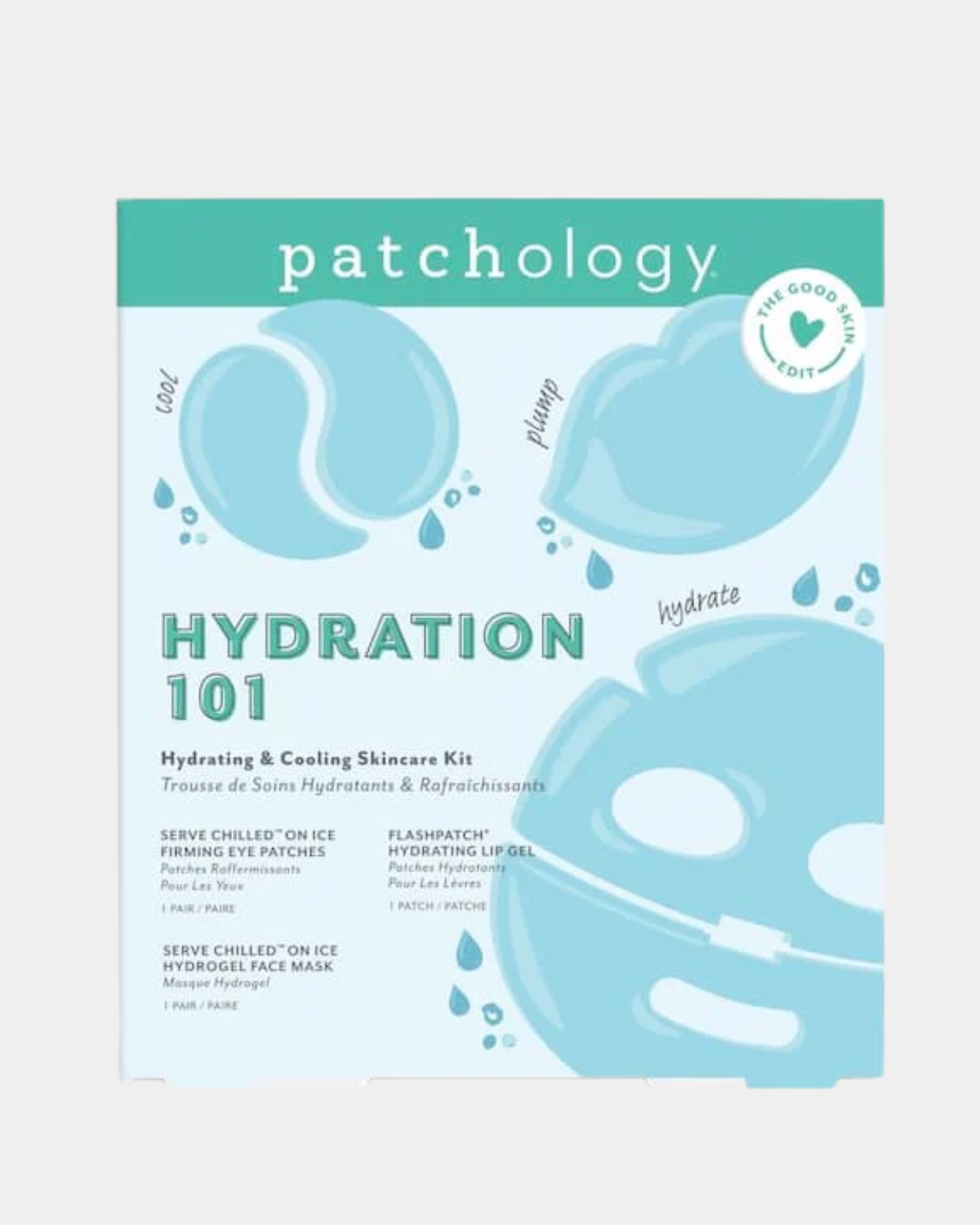 Hydration 101 is your essential skincare starter set for plump, glowing skin. The Serve Chilled On Ice Eye Patches and Hydrogel Mask deliver instant cooling relief and depuffing hydration, while the Hydrating Lip Gel softens and moisturizes. Perfect for dehydrated, tired skin that needs quick revival.