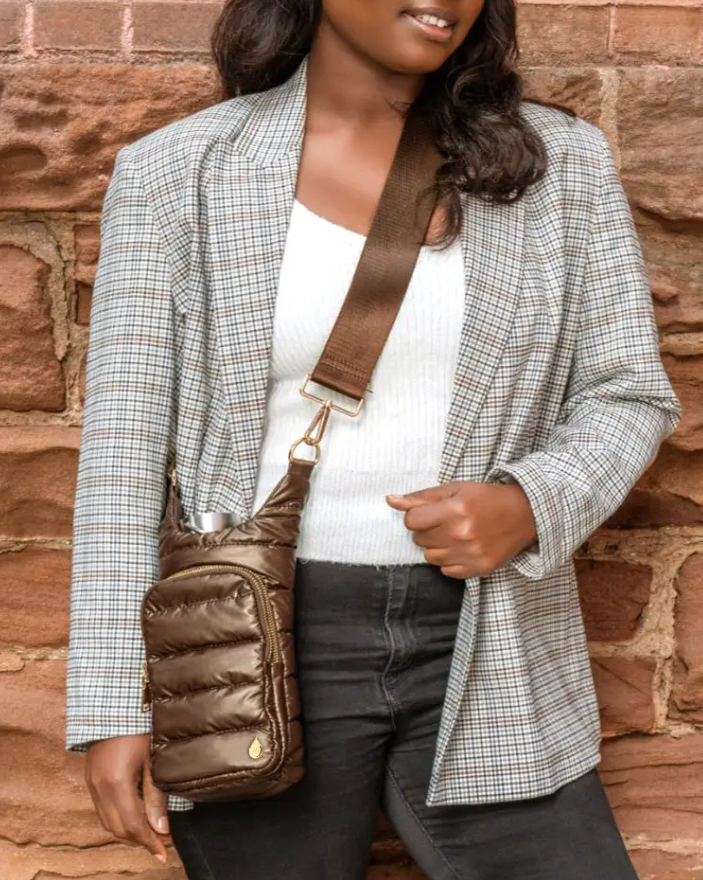 Hydro Crossbody Bag - Chocolate Brown Shiny with Solid Strap