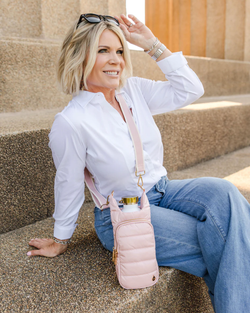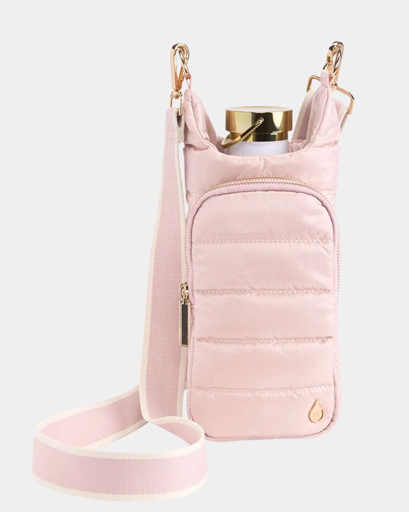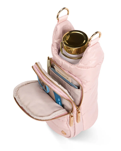 Meet your new travel buddy! This Blush/Ivory HydroBag keeps your phone, passport, cards, and AirPods secure in dual zippered pockets, while the waterproof compartment holds bottles up to 3.5 inches wide. Perfect for festivals, hikes, airport runs, or any adventure where you need hands-free hydration and organized essentials.