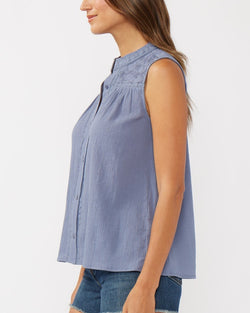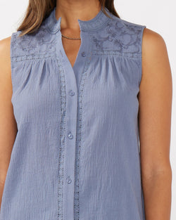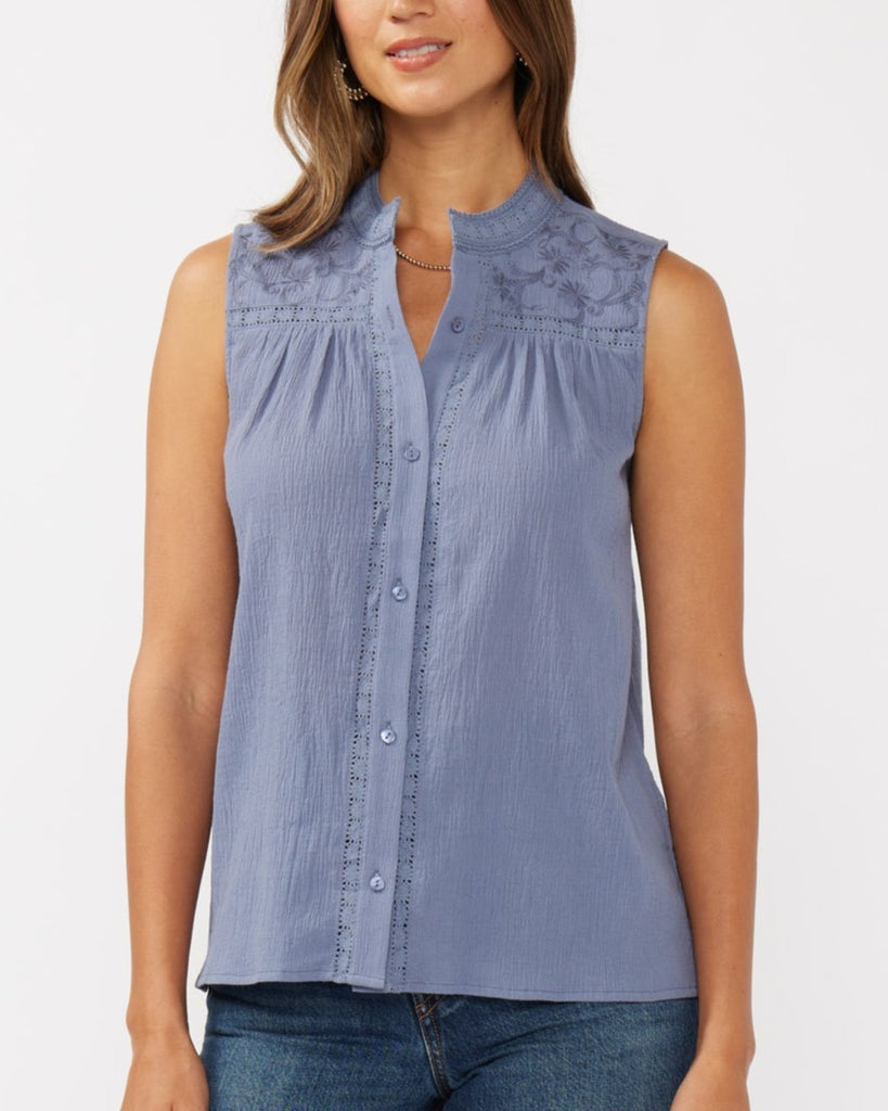 Embrace effortless charm in our Denim Blue Sleeveless Button Down Tank. With delicate lace trim and intricate embroidery, this top adds a touch of whimsy (and a hint of sass) to any outfit. Don't be surprised when you become the envy of all your friends in this playful and stylish piece!