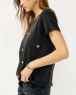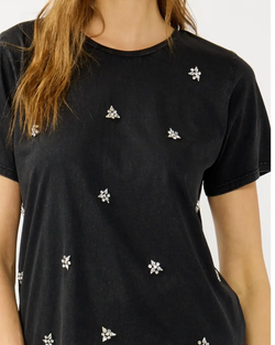Add effortless sparkle to your wardrobe with this embellished t-shirt, crafted from soft cotton jersey for everyday comfort. Featuring shimmering rhinestone clusters across the front, it brings just the right touch of shine. Designed with a round neckline, short sleeves, and a clean straight hem, this piece blends casual ease with elevated detail.