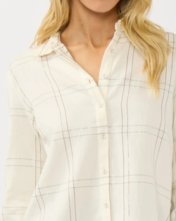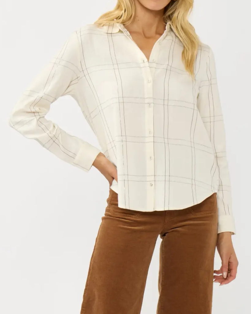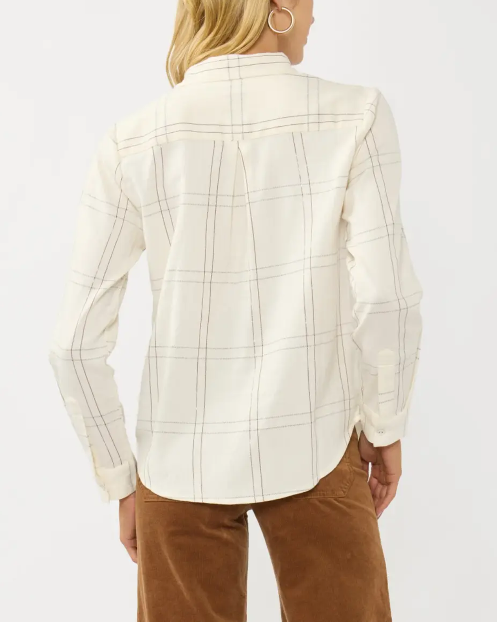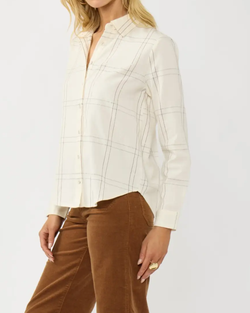 This refined button-down shirt is made from soft plaid fabric subtly woven with lurex thread and features a classic collar, button-front closure, and tailored cuffs. With clean edge stitching, it offers a stylish reinterpretation of a fall essential.