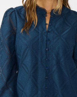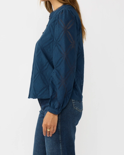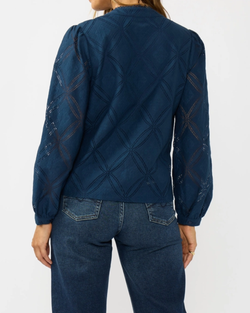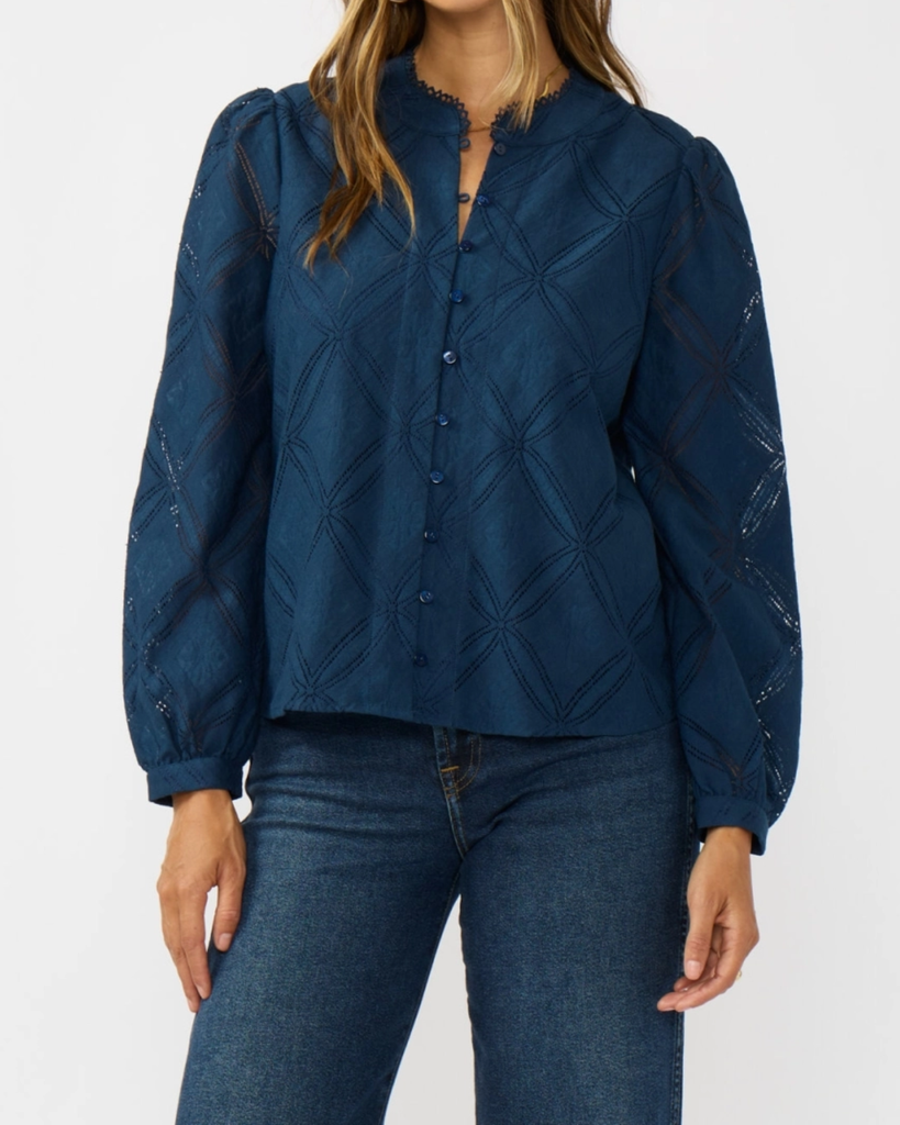 Elevate your fall wardrobe with this Button Front Blouse in Navy, where delicate floral lace meets cozy softness for a look that’s as charming as it is comfy. Perfect for turning heads with a polished vibe and a wink of playful style!