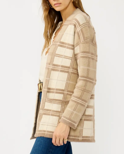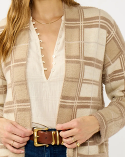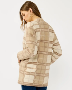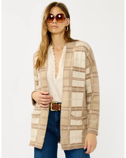 This fall-ready plaid open front cardigan features a relaxed open neckline that flows into long, comfortable sleeves with clean-finished cuffs, creating an effortlessly chic silhouette. The soft, fuzzy textured fabric showcases a beautiful blend of brown tones, finished with a straight hemline that hits perfectly at hip length for versatile layering over your favorite autumn essentials.