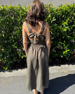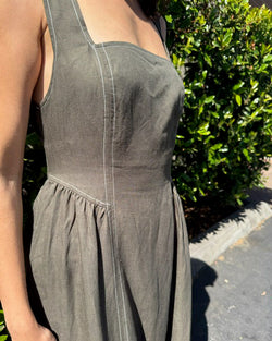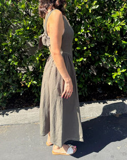 Embrace effortless charm with the Linen Contrast Stitch Midi Dress in Olive. This breezy dress features playful contrast stitching that adds a fun twist to its classic midi silhouette. Perfect for sunny days or casual outings, its lightweight linen fabric keeps you cool while turning heads with subtle detailing. Step out in style and comfort with this versatile wardrobe favorite.