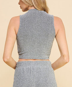 This buttery soft top features a mock neck, sleeveless silhouette and a cropped body. A must to wear alone or for layering. Looks so cute paired with high waisted pants, jeans or a skirt.