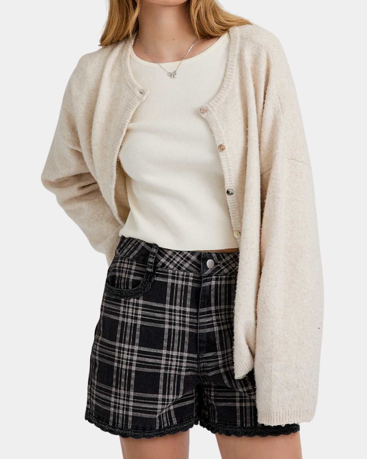 Throw on this oversized button-down cardigan and instantly level up your vibe. The creamy ivory hue pairs with literally everything, while the relaxed fit gives you that effortlessly cool aesthetic.