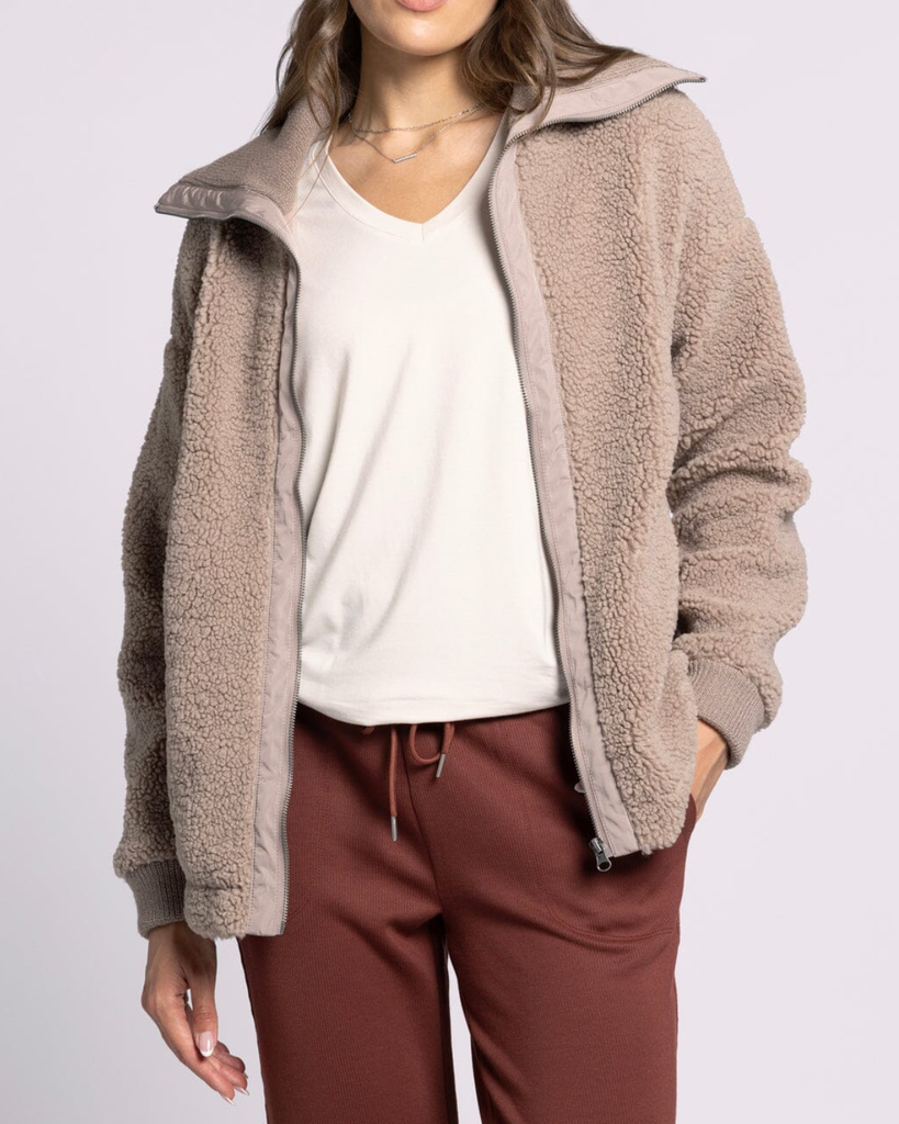 Stay cozy and chic in the Trista Coat, crafted from soft fleece fabric in a versatile taupe shade. Perfect for playful days out or snuggling up on chilly evenings!