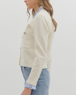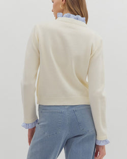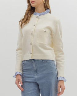 HomeTopsCardigan with Ruffle Stripe Detailing - Cream