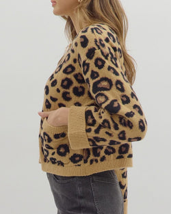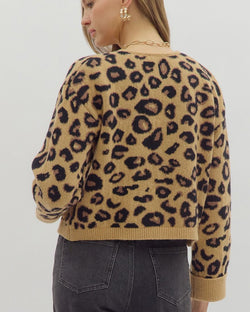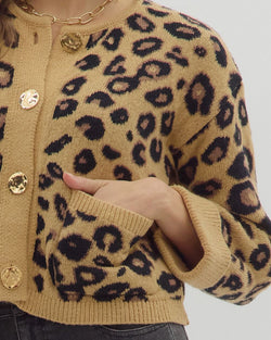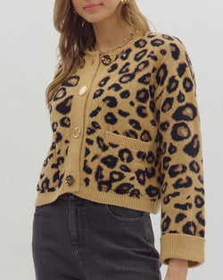 This chic animal print cardigan features gold accent oversized button front closure. The perfect style to wear as a top or layered over tops and dresses. On trend and so cute!