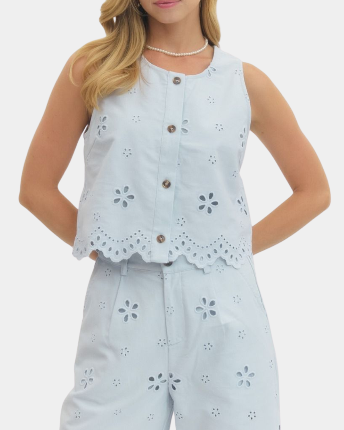 Eyelet Embroidered Top - Light Blue