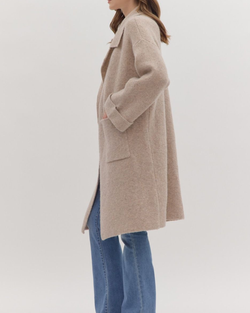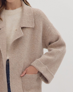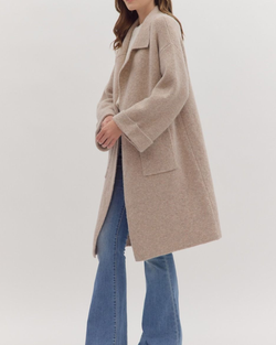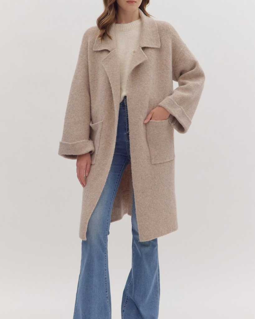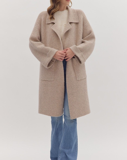 Cozy meets chic in this Open Front Coat in a warm oatmeal hue, perfect for layering with effortless style. Its relaxed fit invites you to play with your wardrobe while staying comfortably elegant all day long.