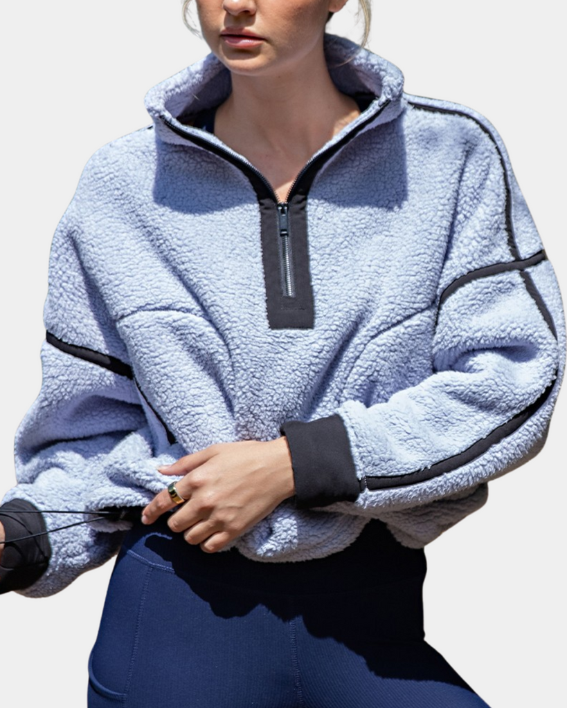 Stay warm and playful in this sherpa quarter-zip, made from soft, airy fabric that feels like a cozy cloud. With a relaxed fit, adjustable hem, and handy side pockets, it’s your perfect chill-day companion.