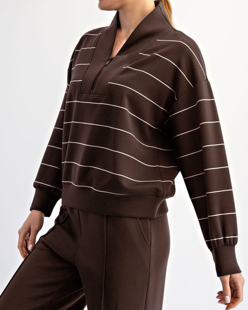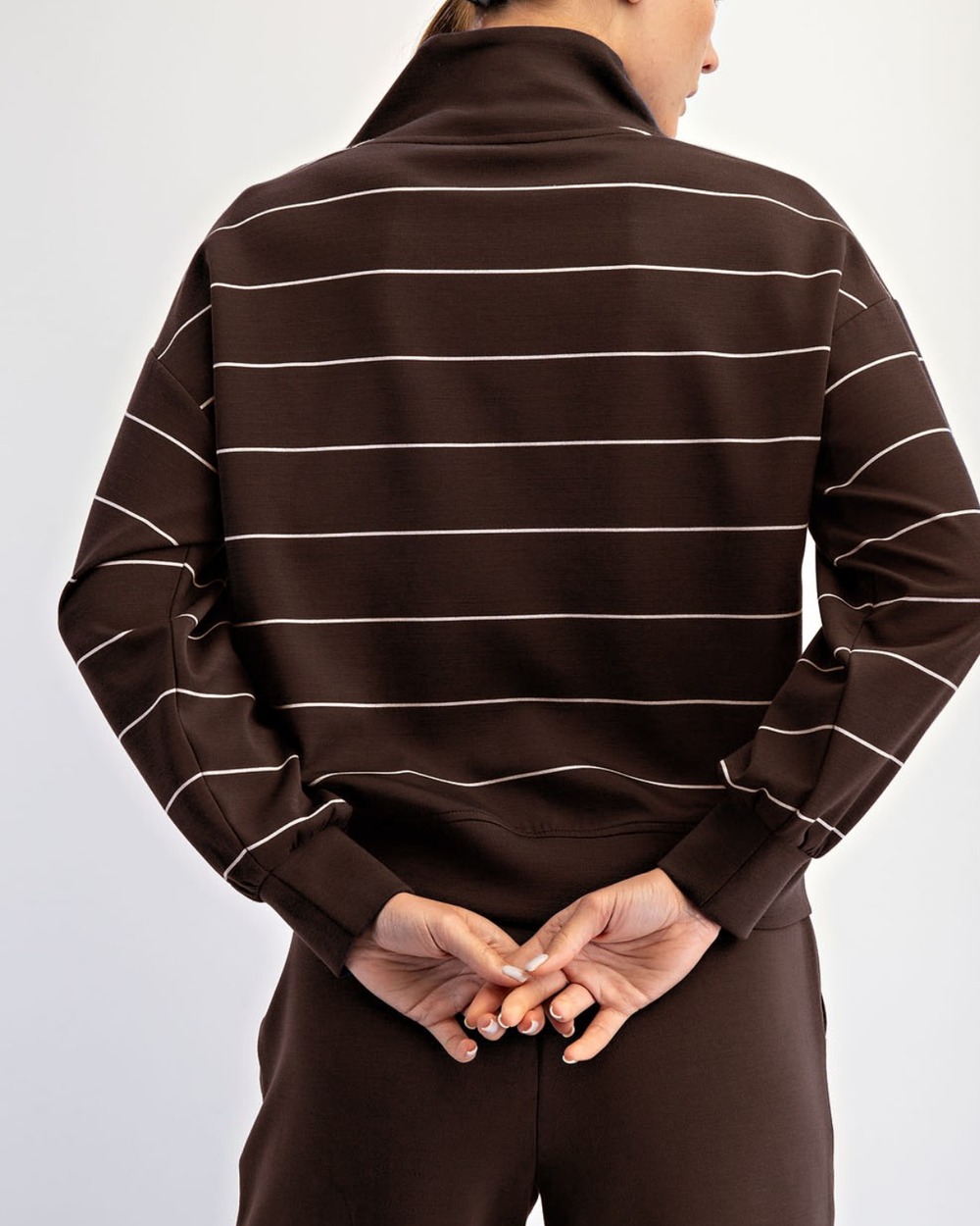Enjoy ultimate comfort in this soft, lightweight striped pullover with a chic mock neck and handy quarter zip. The cozy kangaroo pocket makes it perfect for lounging or adventures with a playful touch.