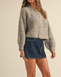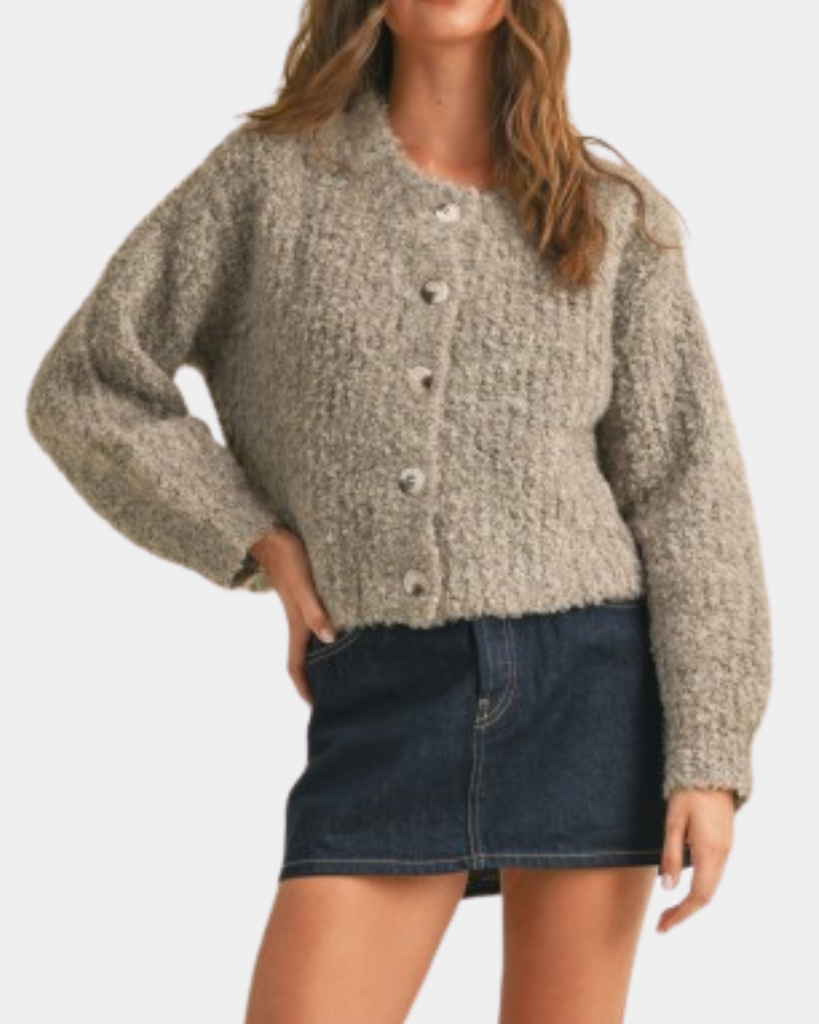 Stay cozy and chic in our Button Front Sweater Cardigan. With a stylish latte color and convenient button front, this cardigan is the perfect addition to any outfit. Keep warm while looking cool - it's a win-win! (Latte not included, sorry.)