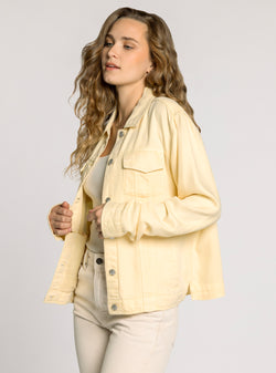 An ultra soft jacket that looks like a jean jacket, but feels like your favorite t-shirt. Perfect for layering.